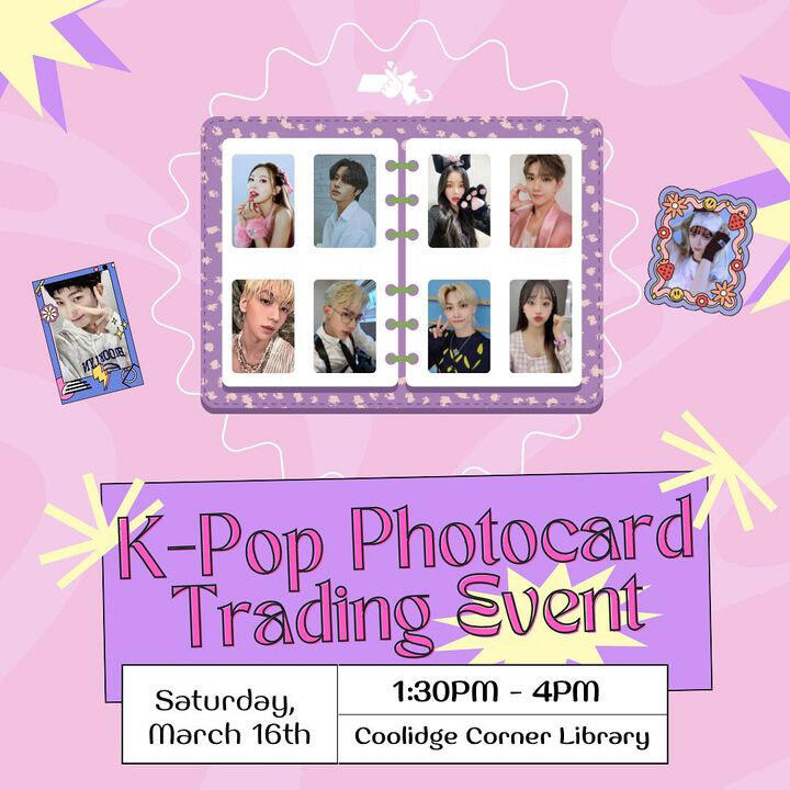 Join K-Pop in Mass and Brookline Public Libraries for a fun day of crafting! Join us for toploader decorating, album scrapbooking, and button making. Choose from a collection of 20+ K-Pop albums for crafting. Enjoy free button making and toploader decorating – use our supplies or bring your own album to craft with!